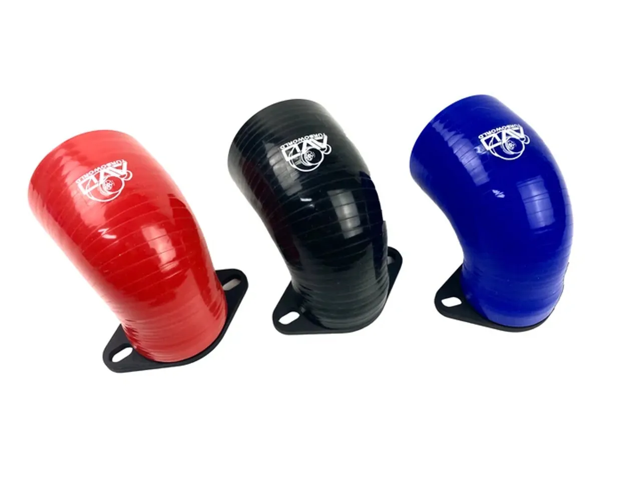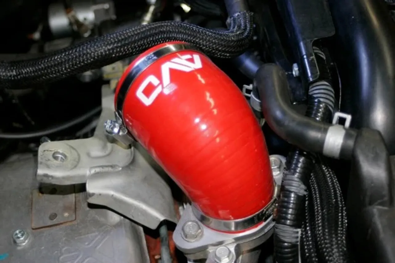 AVOTurboworld designed its Silicone Turbo to Intercooler hose with 5-ply silicone reinforcing for use with the stock or AVO top mount intercoolers. The major reason for this product was to overcome the factory plastic version that cracks and leaks over time. It increases flow and is more durable than the stock hose, and also makes it easier to install as you can swivel the hose on the aluminium adaptor once it is bolted down.