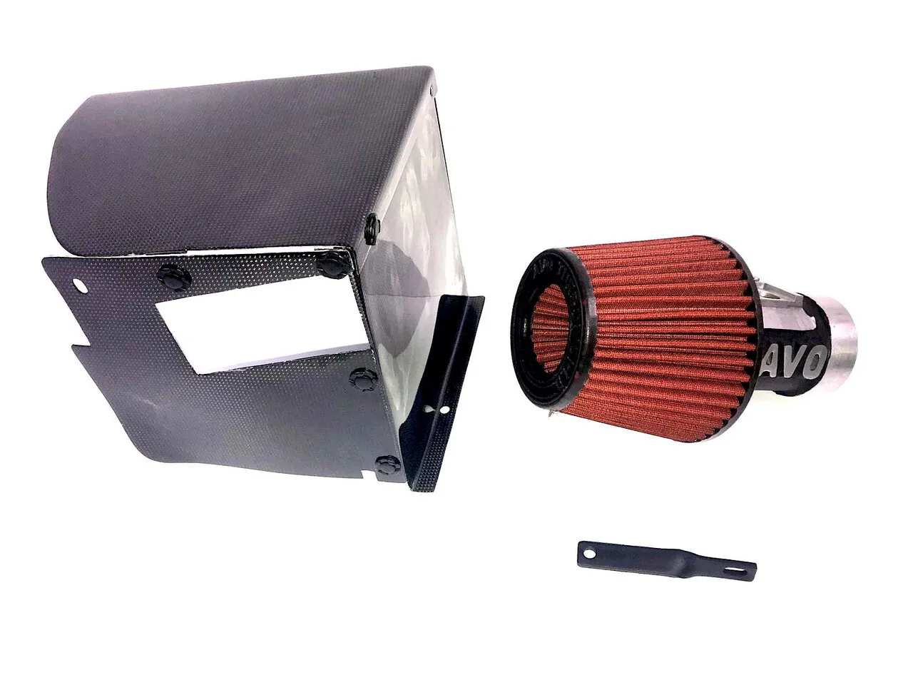 The AVO Power Intake Air Box combo includes all the mounting brackets, aluminium adapter, 2 silicone hoses, hose clamps, 45 degree connecting pipe, dry style air filter and air box.