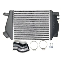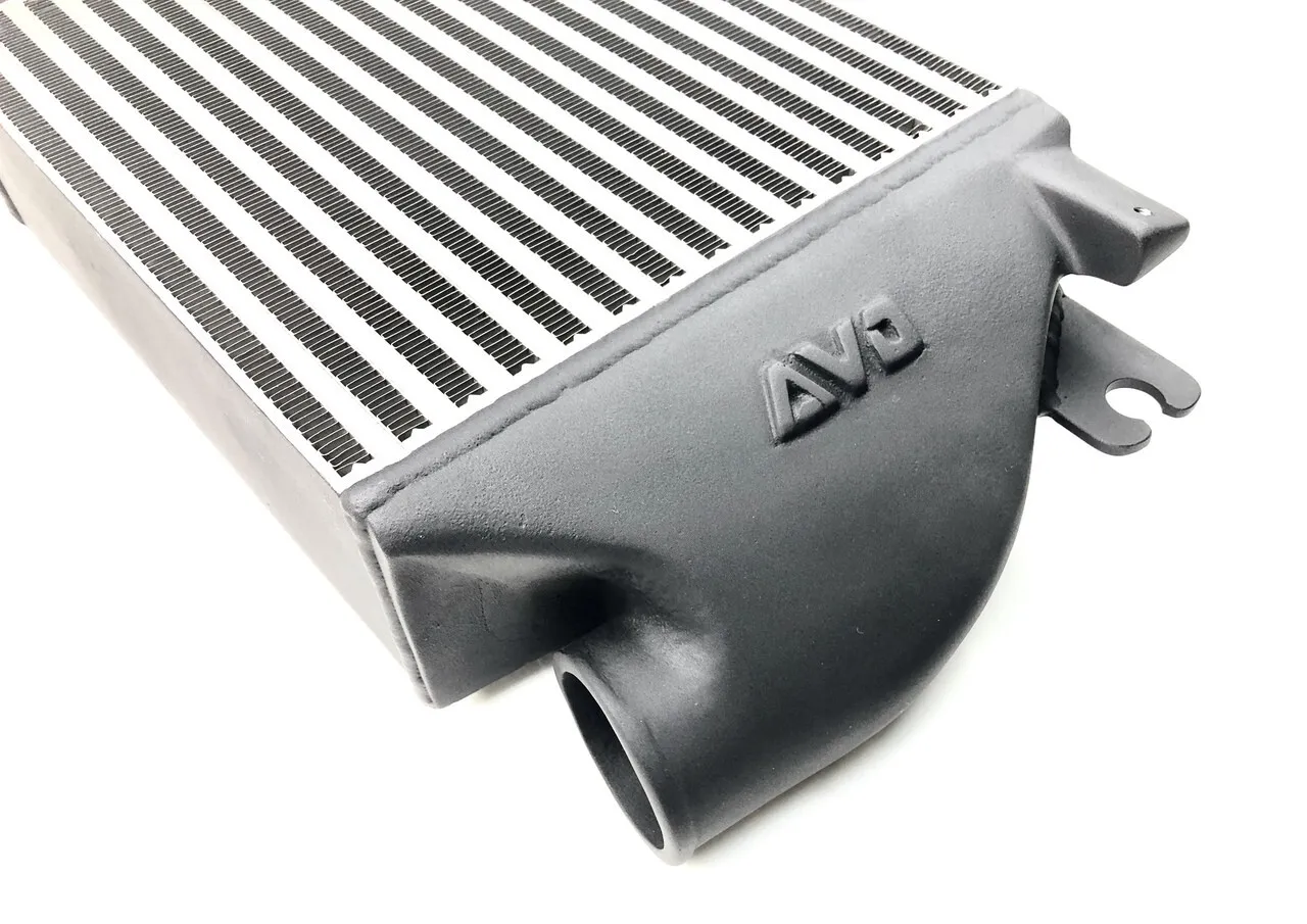 The AVO V2 Top Mount Intercoolers are made from an aluminium bar and plate core with BLACK POWDERCOATED cast aluminium end tanks for a direct replacement part. These were designed specifically to provide the best flow and cooling while bolting up to the factory location. We use our specially designed finn structure in our cores to flow the best CFM along with ideal temperature drop for safer intake air temperatures. The standard factory intercooler setup is quite inefficient and does not allow your engine to produce anywhere near its full potential plus the downfall with cracking of the plastic end tanks. The AVO V2 TMIC Intercooler upgrade kit allows your engine to unleash the horsepower simply through less back pressure. This will allow your turbocharger to increase up to 1~2 PSI in boost and this power is found everywhere on the rpm band, making your car much more fun to drive. Better response and a deeper well of torque to dip into!