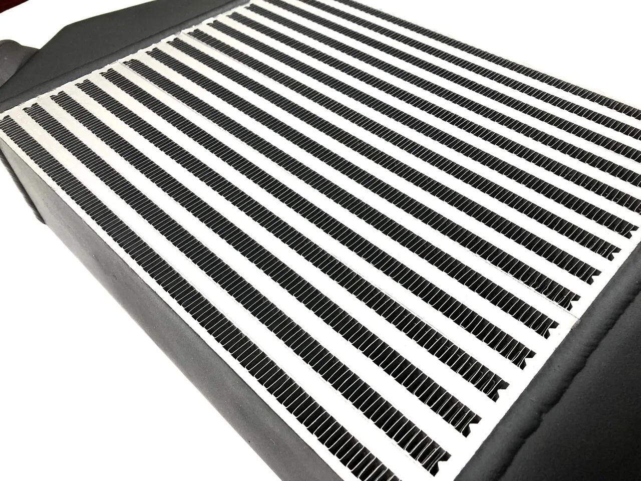 AVOTurboworld V2 TMIC intercoolers use a heat dispersing coating on the intercooler finn and have seen good results. From initial testing, we have seen a 5 degree reduction in temperature using this coating on the finn area of the intercooler. This will help the heat soak issue on stationary air flow in traffic, etc.... With no paint on the intercooler the 175c inlet air temperature was 101c on the outside of the intercooler. The outlet side of the intercooler was 38c which was 5 degrees over ambient temperature. With the heat dispersing paint on the intercooler the 175c inlet air temperature was 113c on the outside of the intercooler. The outlet side of the intercooler was 33c which was the same as ambient temperature. This is how ceramic paint is meant to work, it reflects the heat which in turn keeps the internals cooler as it is not affected as much by the external heat.
