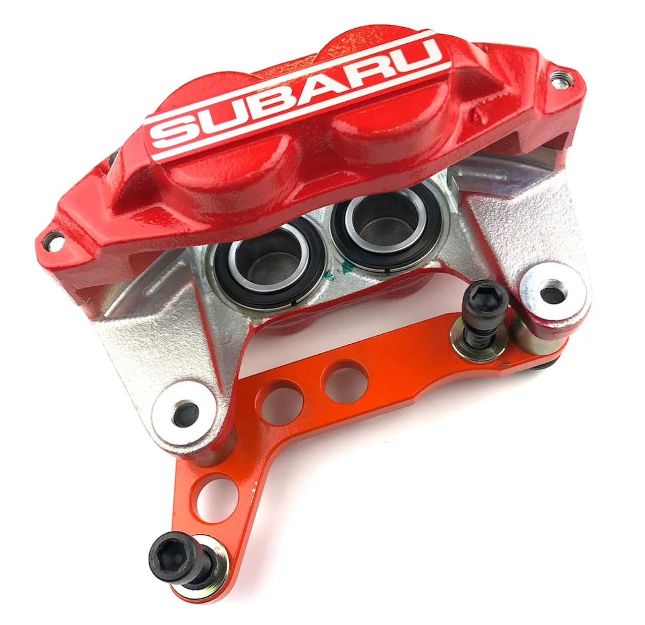 AVOTurboworld's Big Brake Caliper Kit along with the DBA 330mm Front brake rotors will give you additional braking leverage which will reduce fade and increase the useability of your brakes for the street or at the track. Included in the kit is: 2 x Caliper mounts and fitting hardware. This kit is designed specifically for the Subaru cast iron 4-pot calipers, and will only fit under 17inch or larger wheels. The DBA Rotor is sold seperately - part numbers are: DBA-6500SL & DBA-6501SR
