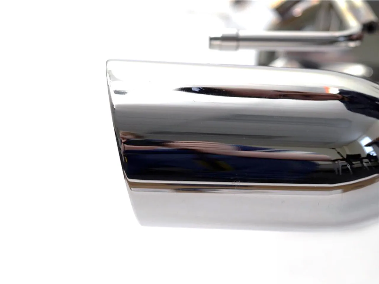 The system can bolt up to the standard down pipe or to an AVO 3" stainless steel down pipe for maximum performance benefits. The rear large muffler comes with a 4" round-rolled adjustable exhaust tip.