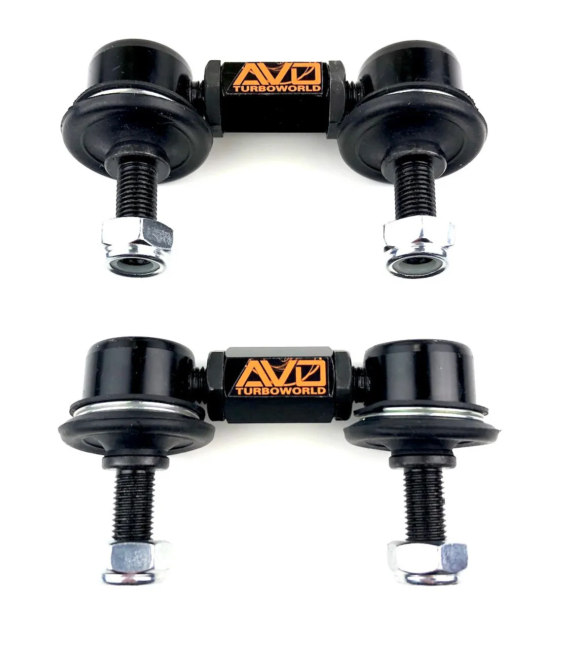 AVOTurboworld Black Series Adjustable Stabilizer End Links reduce the amount of free play before your stabilizer bar starts acting, reducing roll in corners and squat and dive under acceleration and braking. A low-cost solution to firm up your handling performance. Designed for lower-than-stock suspensions.