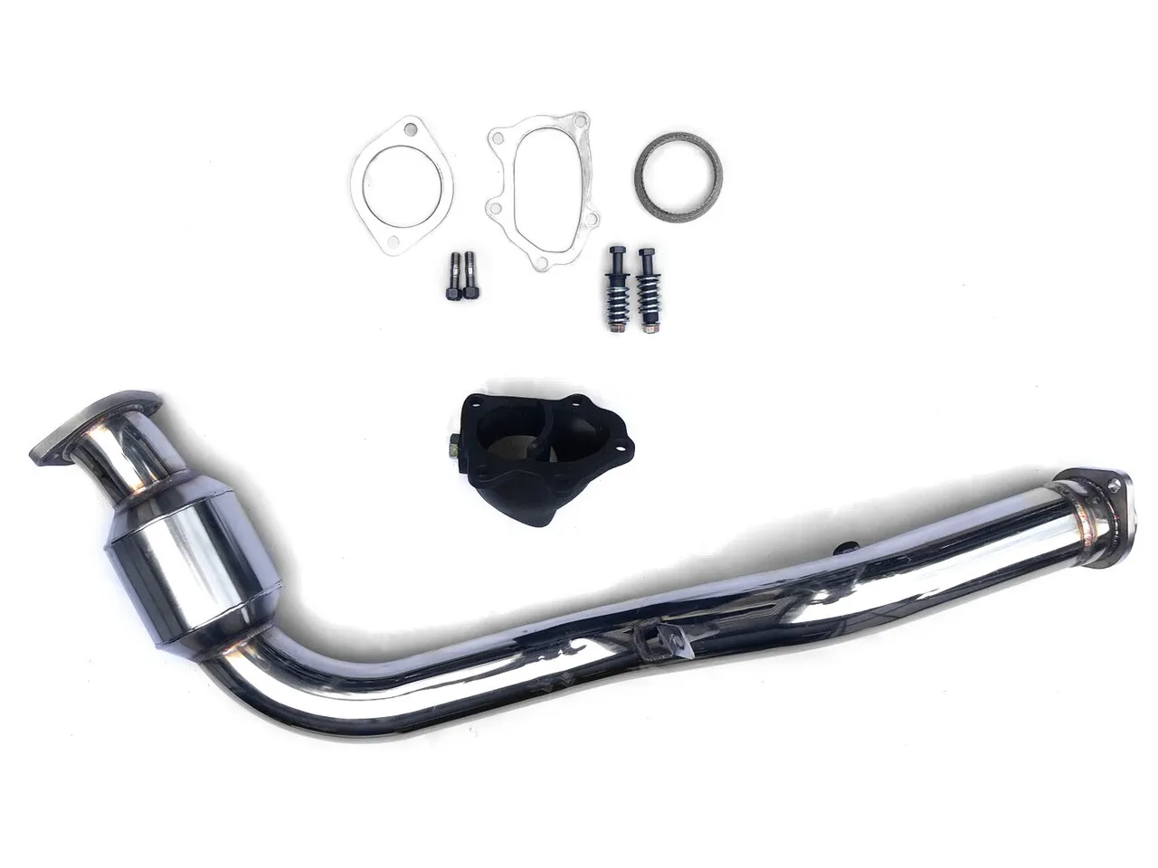 AVOTurboworld's New Gen 3 3” Twin Scroll downpipe or front pipe for the VF36/V37 turbocharger was designed with the intention of optimum gas flow and minimal exhaust back pressure which is essential for high power. Careful attention to tube diameter, smooth radius mandrel bends and a large cat converter body is essential for high performance.