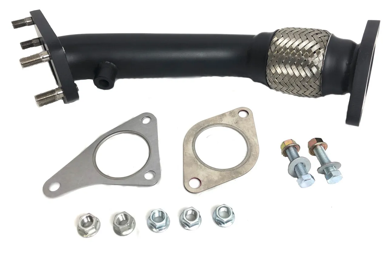 AVOTurboworld's Gen 3 Up-Pipe incorporates a flex-joint similar to the OEM part, ensuring a tight fit and relieving stress on other components. Stock up-pipes in most turbocharged Subaru models have a fairly restrictive catalytic converter, which has been known to fail, taking out the turbocharger with it. The AVO up-pipe deletes the catalytic converter, which makes it legal only for off-road and race use only. Removing the catalytic converter here still leaves two cats in place within your down pipe. Removing this cat decreases spool time and increases performance!