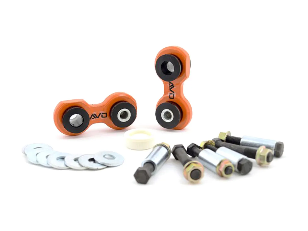 AVOTurboworld`s heavy-duty endlinks for heavy-duty users with a low-down suspension. A more flexible bushing design allows for the full range of suspension movement necessary. These steel endlinks are the answer for the big stabilizer bar setups, especially ones that see a lot of track use.