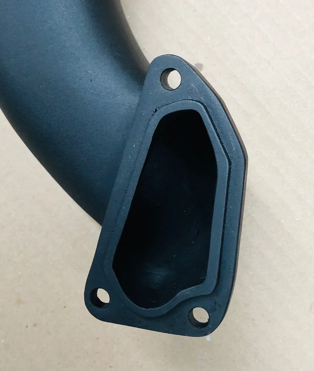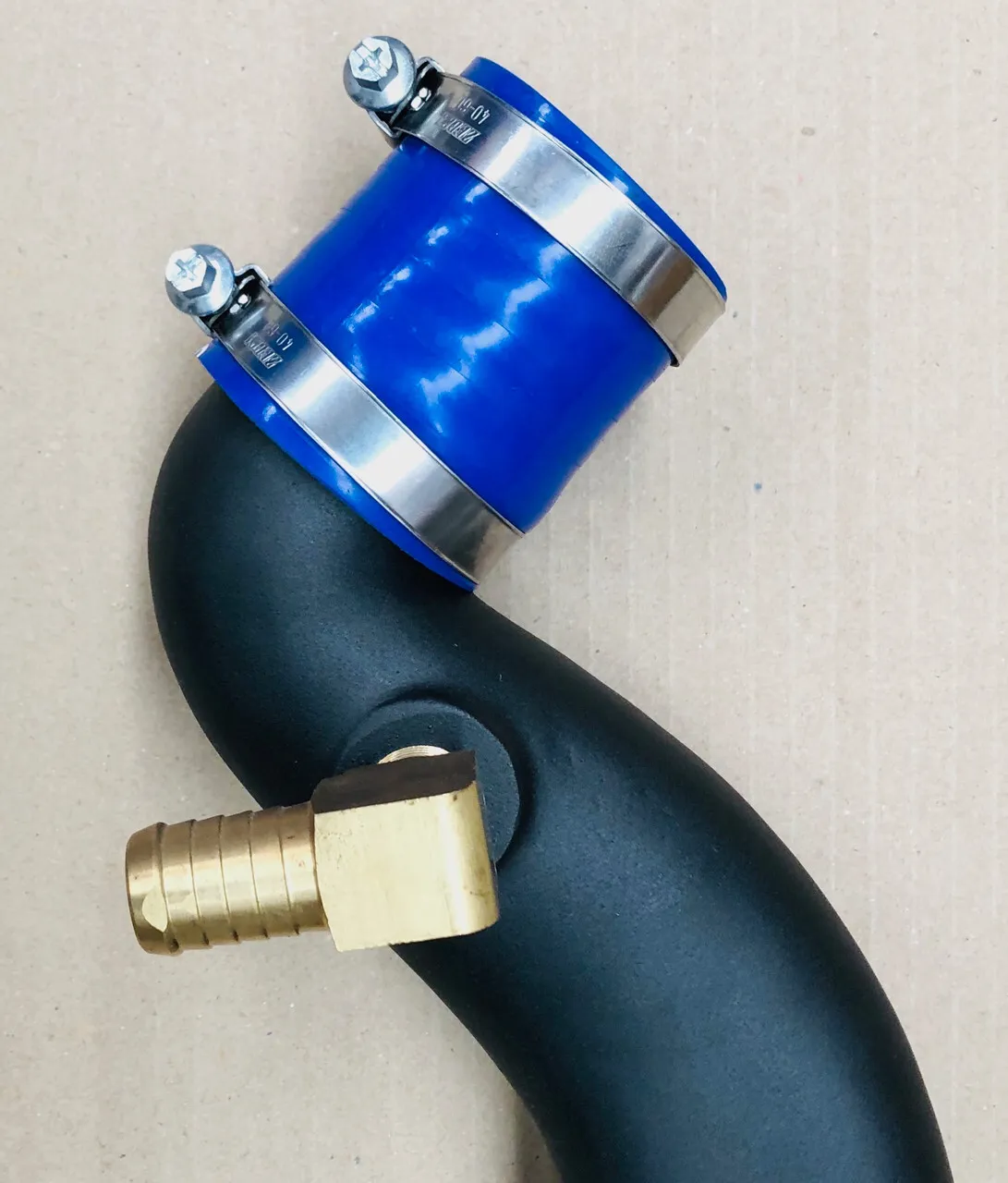 Replacement hard cast intercooler pipe replaces the fragile plastic version. Comes with fitting for BOV and silicone hose & clamps. Finished in a powdercoated Black.