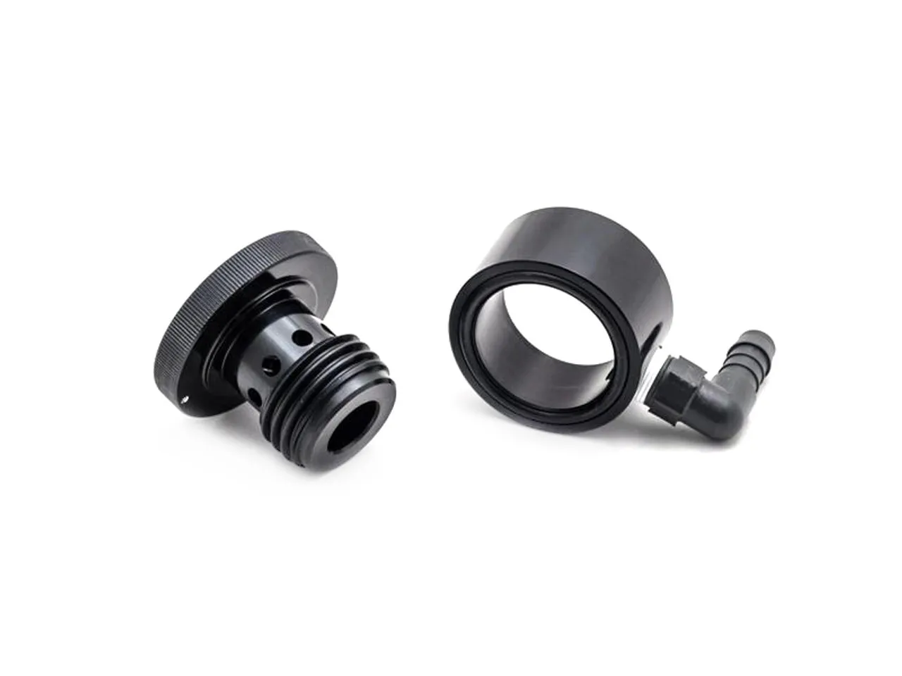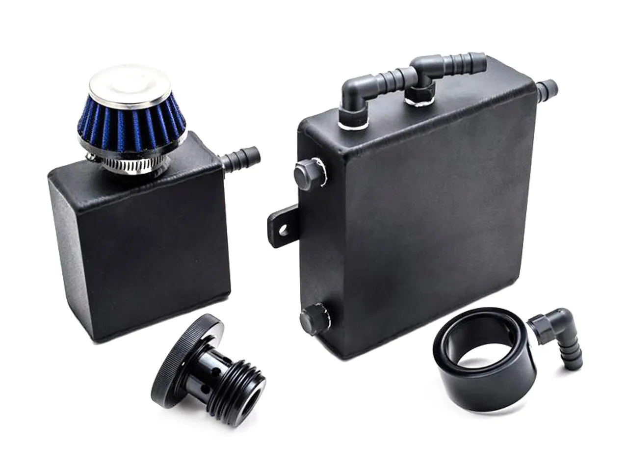 AVO's oil/vapour separator tank kit removes oil mist from the crankcase gas before it is returned back to the engines air intake. The kit bolts onto the factory strut tower and comes with all fittings and accessories necessary to complete a successful installation. This kit allows for the removal of the PCV Valve totally and has a second tank with air filter for breathing to atmosphere. Another unique item in the kit is the oil filler cap that allows you to directly route excess oil from the turbocharger oil reservoir tank back into the engine. This is designed to alleviate any overflow issues from extended high rpm usage at the track.