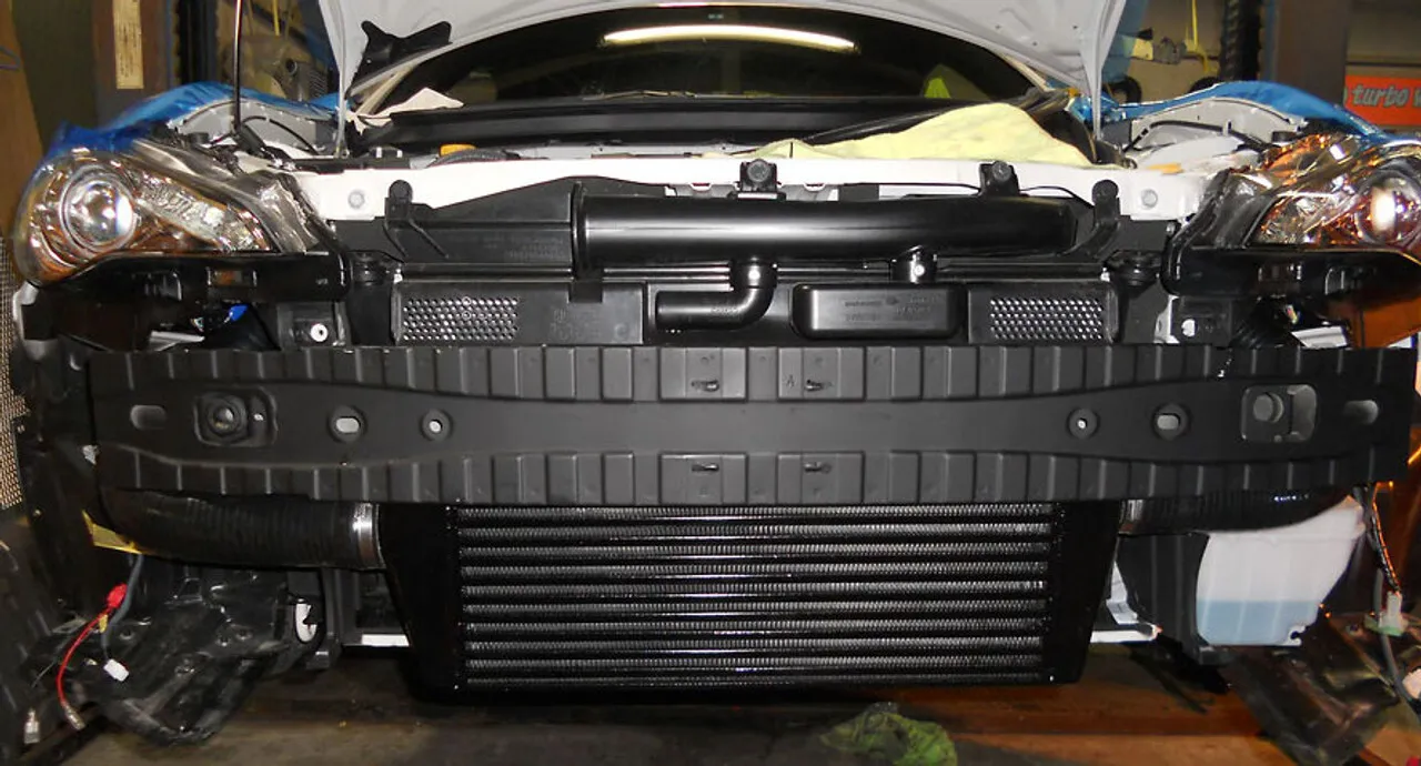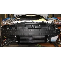 The turbocharger kit is designed from top to bottom specifically for the FR-S and BRZ, and consists of the all the parts necessary to bolt the kit up to the car. We utilize an AVO2049 billet upgrade turbocharger that mounts up under the front of the engine via our stainless steel unequal ceramic coated exhaust manifold, and then it bolts up to the stock exhaust with our ceramic coated stainless steel turbo outlet (also referred to as a downpipe). Cooling the pressurized air is an aluminium bar and plate 3.5" upgrade front mount intercooler which uses black piping throughout, mechanical oil scavenging pump, oil reservoir tank, and all necessary water, oil hoses and fittings. This turbo kit has been designed to bolt up to the stock air intake box and to the stock exhaust system. We have spent a lot of time ensuring it will work with the standard fuelling system for a complete bolt on and go setup. The beauty of the system is that it looks very stock from above! The upgrade FMIC has been specifically designed to fit with the standard bumper without trimming as well, and on FR-S models would be difficult to see unless you are looking for it.