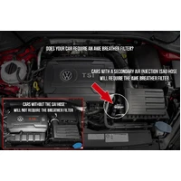 Certain vehicles will require a small breather filter to go with their intakes. If you have a Secondary Air Injection (SAI) hose, this will be a required accessory. Check out the handy image to see where the SAI is, and if you have it.