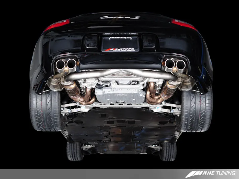 For Porsche drivers looking to eliminate the rear muffler, but not willing to accept the slight loss of power an X-Pipe creates. AWE Cross Over Pipes are designed for enthusiasts looking to improve the power of their car, while reducing weight, and also waking up the tone of the car. Cross Over Pipes are an affordable and simple-to-install modification. With the OE rear center muffler, entering exhaust gas is forced into a tight radius u-turn before exiting from the same side of the muffler. This turn hurts exhaust flow and power. AWE 997.2 Cross Over Pipes are designed to completely eliminate the center rear muffler from the exhaust flow equation, providing the smoothest and straightest path possible for the exhaust gas. AWE Cross Over Pipes provide gains of 5 horsepower and 5 lb ft of torque at the crank, and a weight savings of 6.5lbs compared to the OE center muffler.AWE exhaust systems are handbuilt works of art, are award winning, and are what your Porsche deserves.