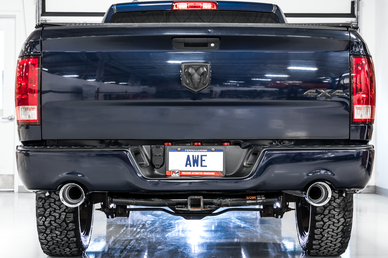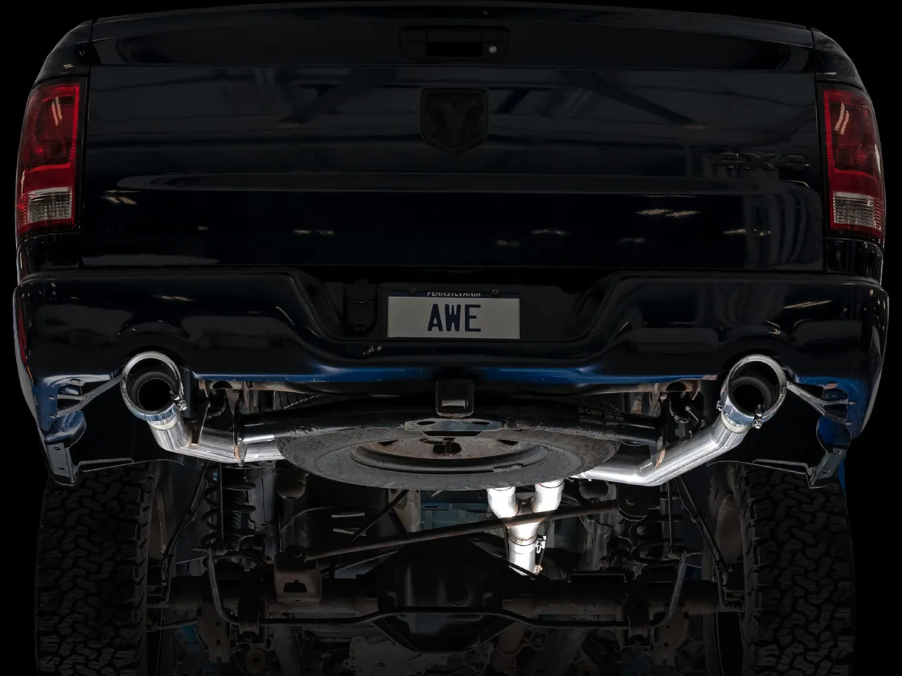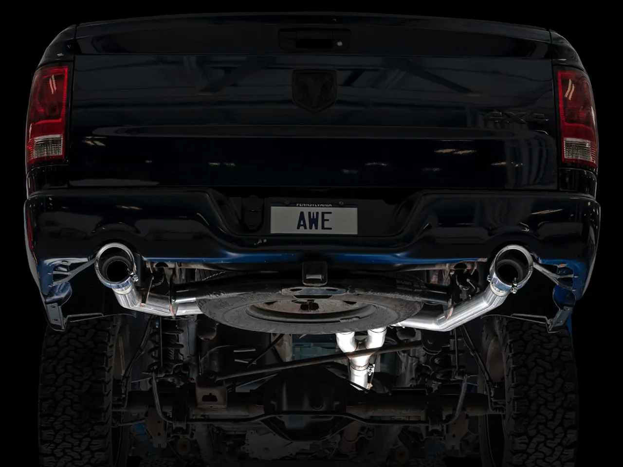 AWE 0FG Dual Rear Exit Catback Exhaust for 4th Gen RAM 1500 5.7L (with bumper cutouts) - Chrome Silver Tips
