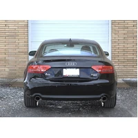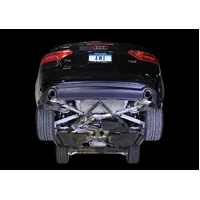A5 Research and Development has yielded an exhaust and downpipe that is remarkably civil while idling / part throttle cruising, but unleashed at full throttle it produces what some have called a "war-cry wail." Sophisticated, refined, and powerful, all in one package. Making good, better The stock exhaust system on a B8.5 A5 is full of crimped tubing that impedes exhaust flow and robs horsepower. The AWE B8.5 A5 2.0T Touring Edition Exhaust and Downpipe are designed using CAD modeling software to produce smooth gradual bends and to eliminate any interruption to the flow of exhaust gasses. Our improvements to the exhaust path result in gains of 8-9 horsepower and 6-7 lb ft of torque at the crank.AWE A5 Touring Edition Exhaust - Dual Outlet (One tip on each side of the car) The dual outlet version of our A5 Touring Edition exhaust features two 90mm (3.50 inch) slash-cut tips, located on each side of the car. Each tip is available in chrome silver or our recognized diamond black plating. The tips sport engraved AWE logos and are double-walled to ensure a mirror polish, even under hard usage. Each tip is individually adjustable, so stagger and depth into bumper can be set according to personal taste. This system will not work with the factory valance and requires the purchase of a Conversion Kit as follows: Non S-Line Cars: Order the Dual Outlet Bumper Conversion Kit - for Non-S-Line Cars, which comes complete with all of the bits and pieces required to convert your factory bumper to fit an AWE dual outlet system. S-Line Cars: Order the Dual Outlet Bumper Conversion Kit - for S-Line Cars, which comes complete with everything you need to convert your S-Line car to accept an AWE dual outlet exhaust.