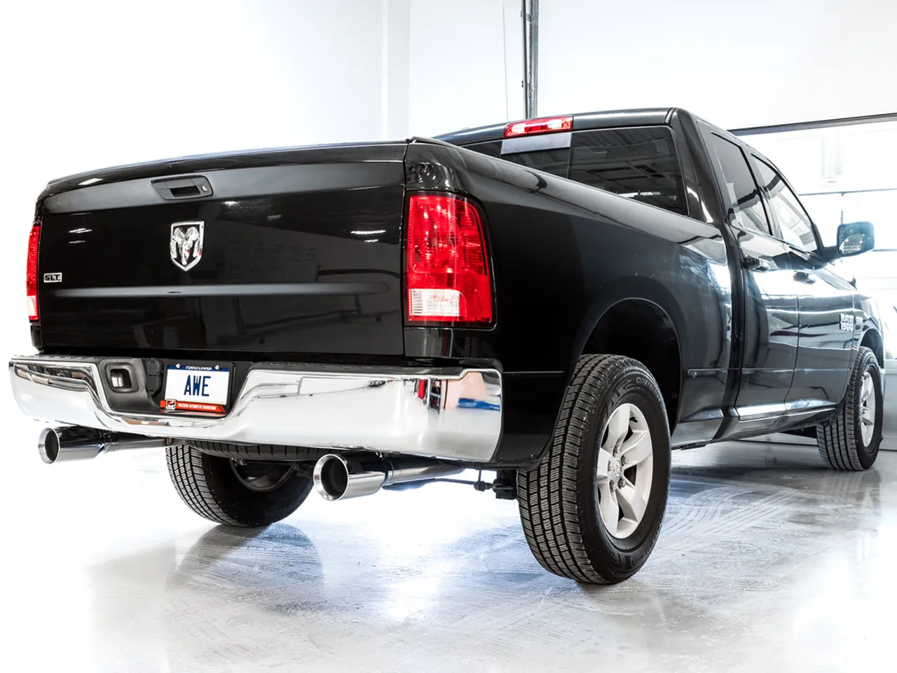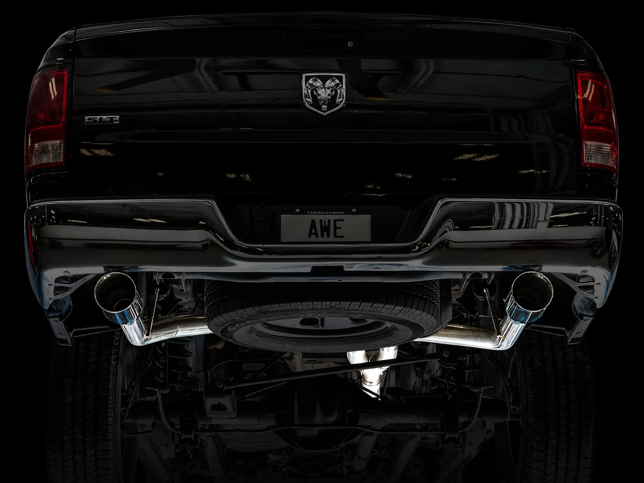 AWE 0FG Dual Rear Exit Catback Exhaust for 4th Gen RAM 1500 5.7L (without bumper cutouts) - Chrome Silver Tips