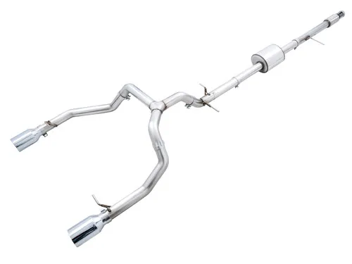 AWE 0FG Catback Split Rear Exit Exhaust for 4th Gen Silverado/Sierra 1500 5.3L (Flat Bumper) - Dual Chrome Silver Tips