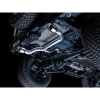 Handcrafted from US-made 3” T304L stainless steel, the 0FG Exhaust is a straight-through Cat Back configuration applicable to all Bronco models – 2.3T, 2.7TT, 2-door and 4-door – with modular capabilities unlike anything on the planet. The 0FG Exhaust features a bespoke AWE resonator in the mid pipe to produce an appropriate dose of aggression, followed by smooth bends towards the rear of the Bronco. On the way to the rear, depending on how many doors there are on your Bronco, lies an included adapter to bridge the difference in length across models. 2-door owner simply won't need these adapters, but 4-door owners will be thrilled. The 0FG modularity shines at the final breakpoint in the exhaust route. Not only does the 0FG accommodate various tip options, it also accommodates AWE’s BashGuard™. What’s BashGuard? Thanks for asking. The AWE BashGuard™ is included in every 0FG exhaust, and enables the 0FG to be the one exhaust to rule them all. Thanks to the modularity in the rear, simply remove the rear axle-back portion of the 0FG and replace it with the high-tuck BashGuard™. BashGuard™ is appropriately equipped with a .125” thick reinforced stainless ring. Perfect for bashin’. The Bronco Exhaust version you're checking out now is the Dual Split Rear Exit -- dual 4.5” double-walled, slash-cut Chrome Silver tips exiting below the rear bumper. This configuration adds needed symmetry to the Bronco’s very asymmetrical bumper, and it was engineered with aftermarket bumpers in mind. And remember, every kit comes with the AWE BashGuard™.One exhaust. Every terrain. Only from AWE.
