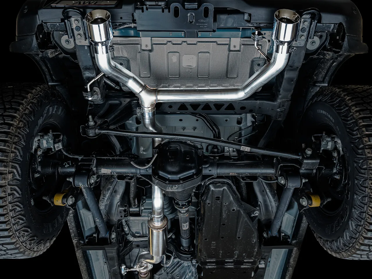 AWE 0FG Catback Exhaust for Ford Bronco with BashGuard™ - Dual 4.5" Chrome Silver Tips