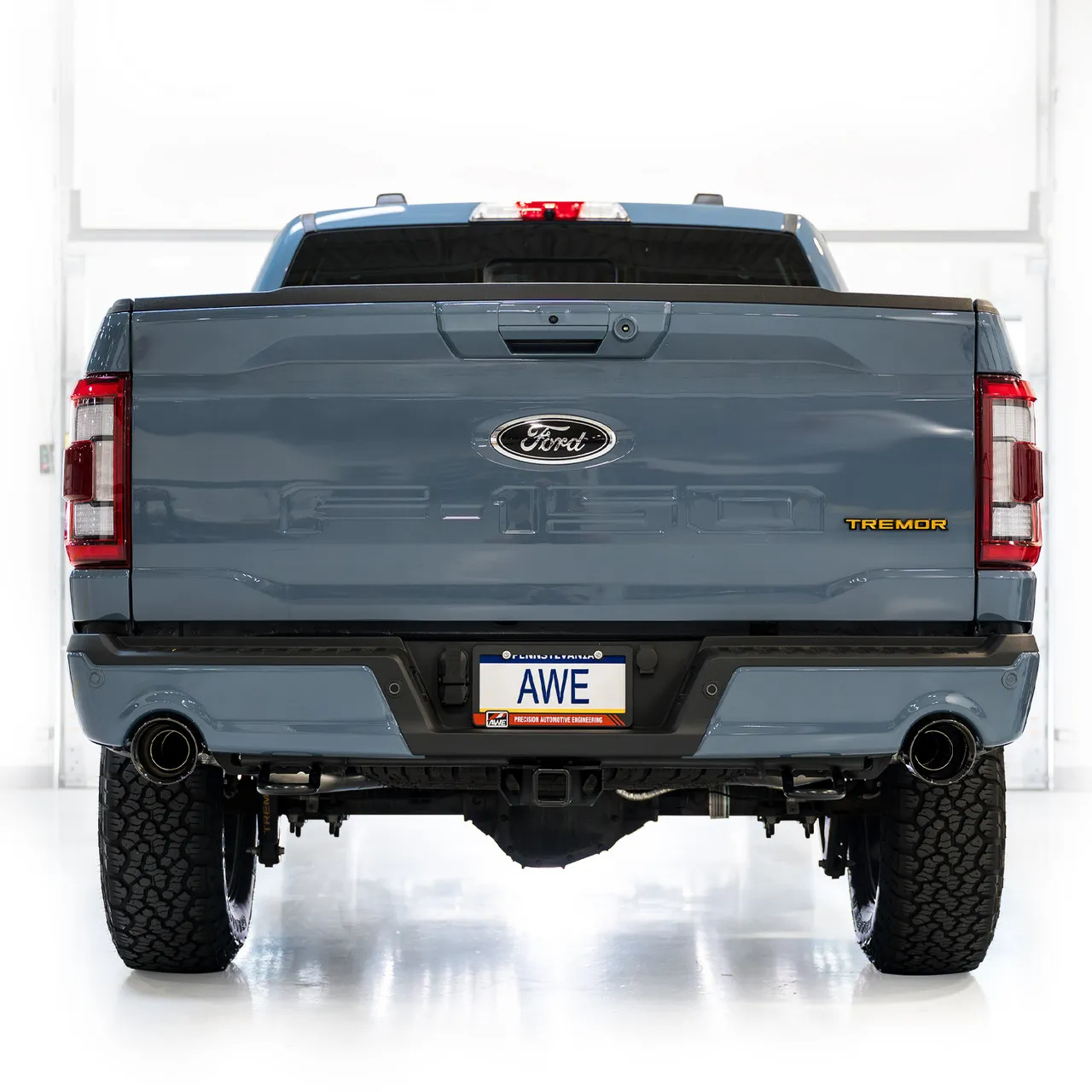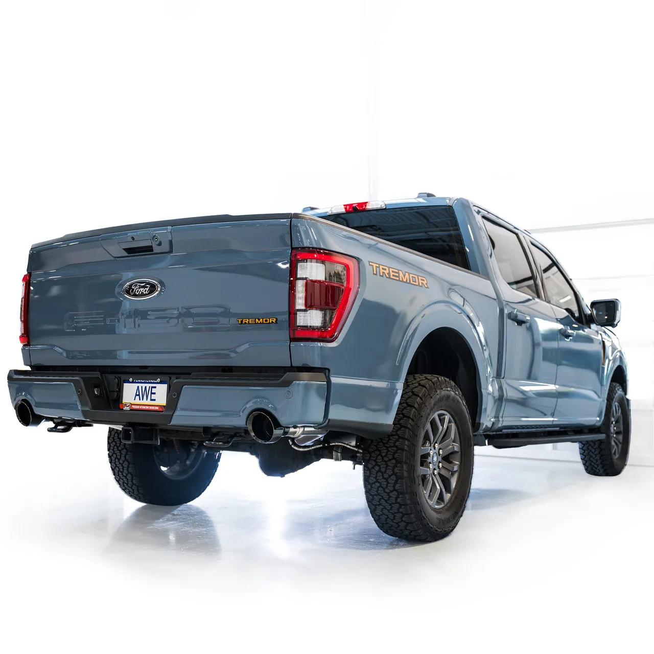 AWE 0FG Resonated Catback for '21+ Ford F-150 Tremor (With Bumper Cutouts) - Diamond Black Tips