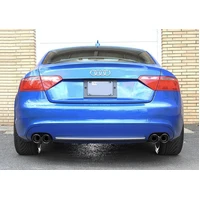 A5 Research and Development has yielded an exhaust and downpipe that is remarkably civil while idling / part throttle cruising, but unleashed at full throttle it produces what some have called a "war-cry wail." Sophisticated, refined, and powerful, all in one package. Making good, better The stock exhaust system on a B8.5 A5 is full of crimped tubing that impedes exhaust flow and robs horsepower. The AWE B8.5 A5 2.0T Touring Edition Exhaust and Downpipe are designed using CAD modeling software to produce smooth gradual bends and to eliminate any interruption to the flow of exhaust gasses. Our improvements to the exhaust path result in gains of 8-9 horsepower and 6-7 lb ft of torque at the crank.AWE A5 Touring Edition Exhaust - Dual Outlet (One tip on each side of the car) The dual outlet version of our A5 Touring Edition exhaust features two 90mm (3.50 inch) slash-cut tips, located on each side of the car. Each tip is available in chrome silver or our recognized diamond black plating. The tips sport engraved AWE logos and are double-walled to ensure a mirror polish, even under hard usage. Each tip is individually adjustable, so stagger and depth into bumper can be set according to personal taste. This system will not work with the factory valance and requires the purchase of a Conversion Kit as follows: Non S-Line Cars: Order the Dual Outlet Bumper Conversion Kit - for Non-S-Line Cars, which comes complete with all of the bits and pieces required to convert your factory bumper to fit an AWE dual outlet system. S-Line Cars: Order the Dual Outlet Bumper Conversion Kit - for S-Line Cars, which comes complete with everything you need to convert your S-Line car to accept an AWE dual outlet exhaust.