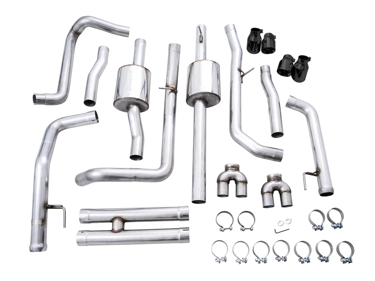 AWE 0FG Catback Split Rear Exit Exhaust for 4th Gen Silverado/Sierra 1500 6.2L (With Bumper Cutouts) - Quad Diamond Black Tips