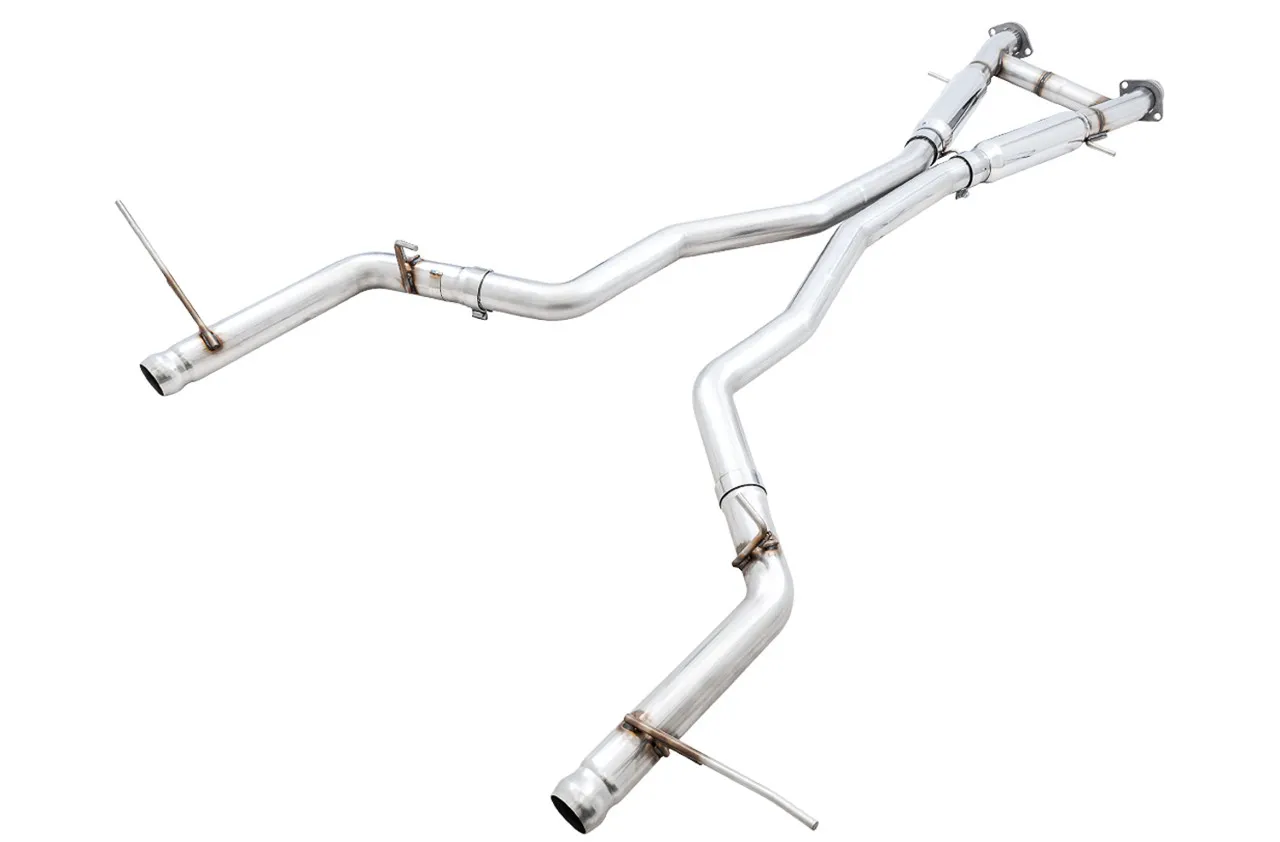 Tones worthy of tremors. For those who like it raw and rowdy, the Track Edition is for you. The Track Edition shares the same integrated H-pipe and precision engineering as its Touring Edition counterpart, minus AWE’s patented drone-canceling solution, 180 Technology®. In place of the 180 Technology® resonators in the rear lies Track Edition straight sections. As a result, this version is known to get (really) rowdy in mid-range acceleration and deceleration and may be too much for many. Due to this reason, AWE Track Edition Exhausts cannot be returned based on sound preference. You've been warned. But if it gets too rowdy for you, we've made it easy to switch on over to the Touring Edition via our convenient Conversion Kits - no problemo. Available with 5" double-walled slash-cut tips in either Diamond Black or Chrome Silver. Or, if you prefer to keep it stealth, AWE Exhausts are also available to accommodate the factory tips.