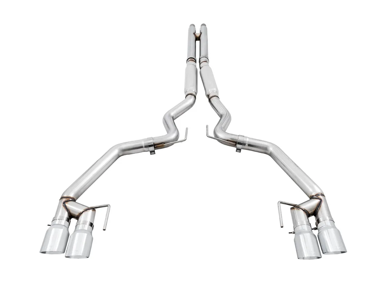 • AWE Track Edition Cat-back Exhaust for the 2018+ Mustang GT - Quad Chrome Silver Tips