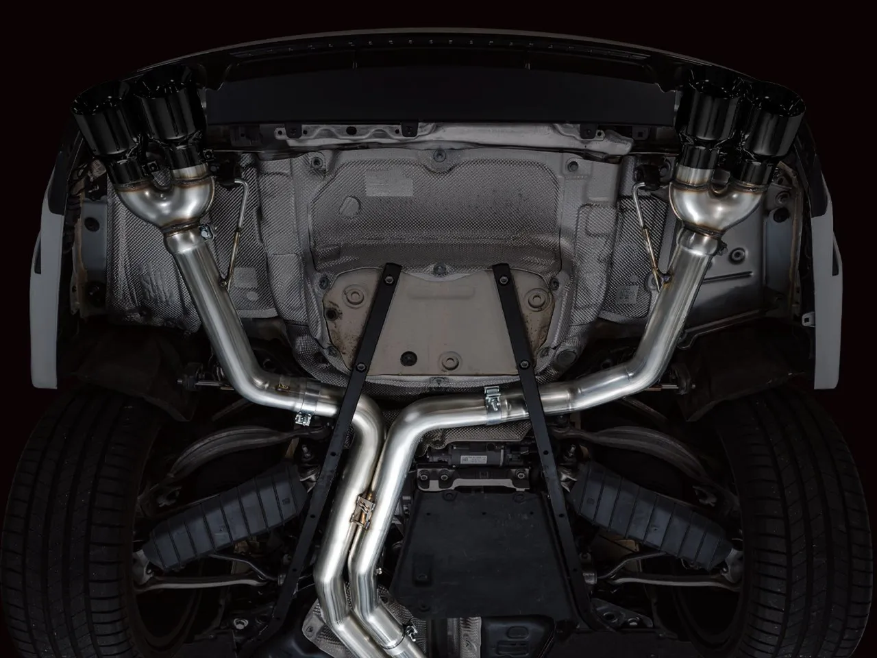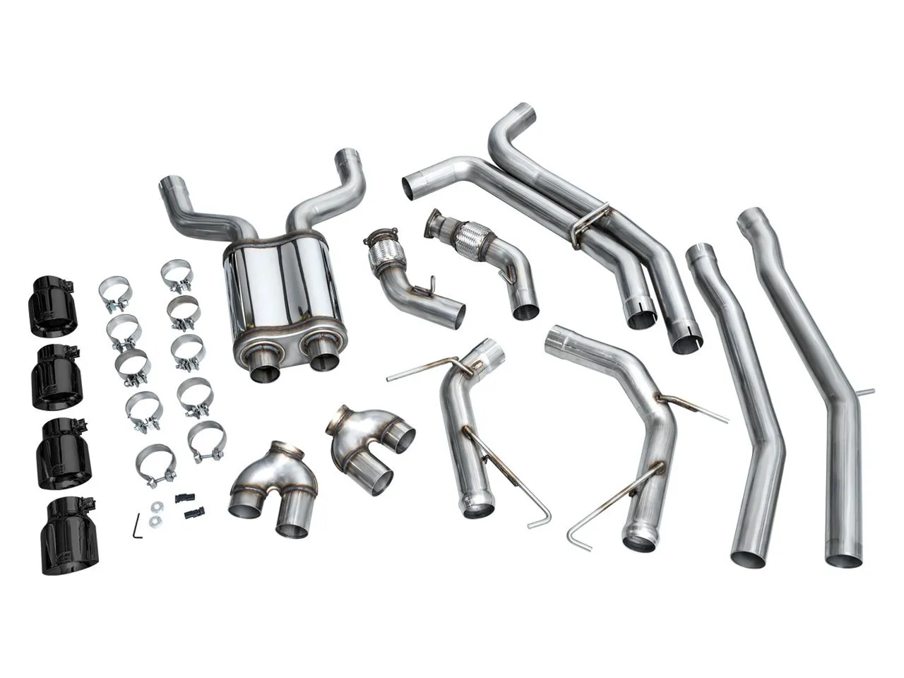 • Post-catalyst downpipes feature factory-matched flanges and robust flex sections to absorb engine movement