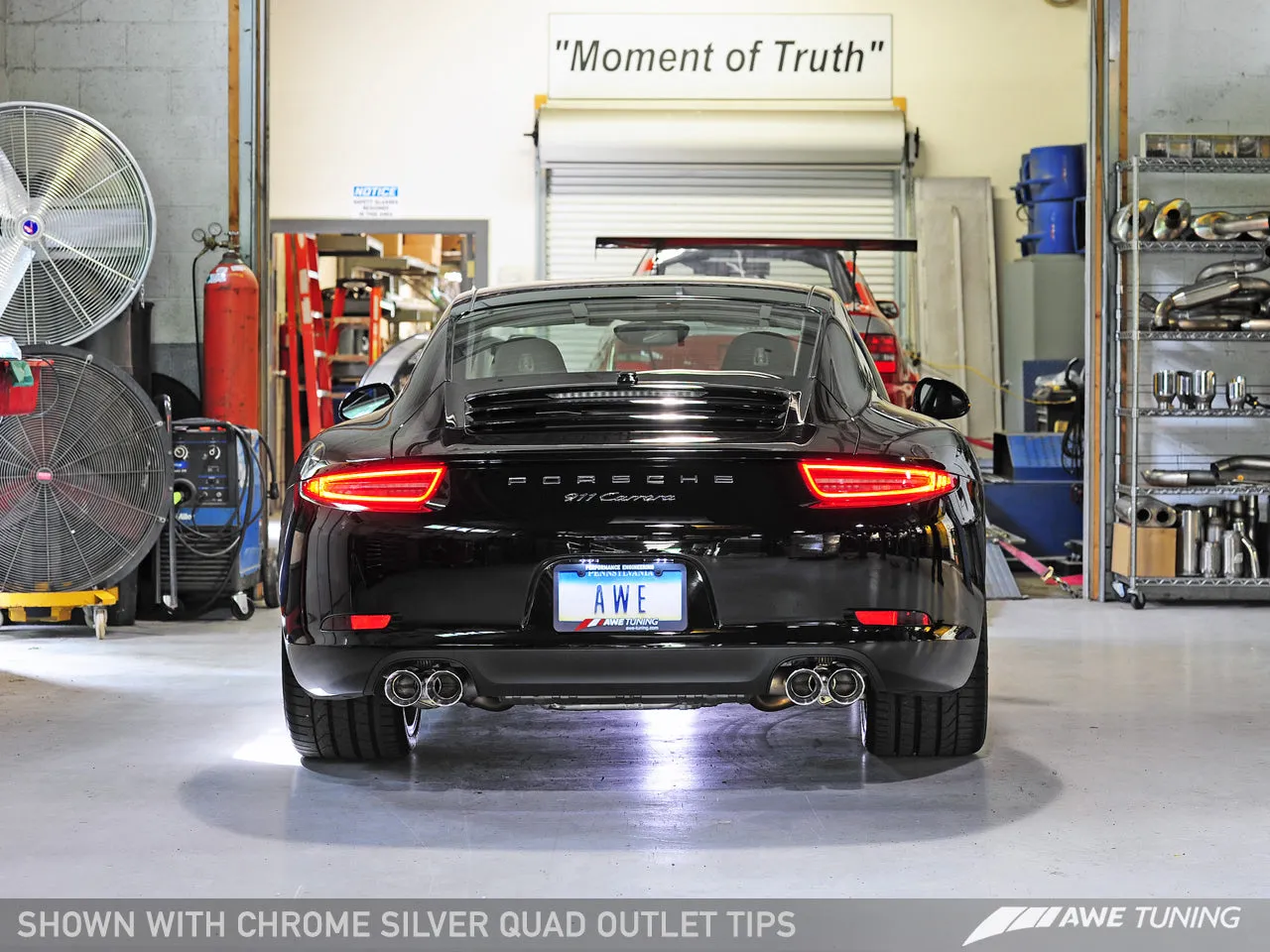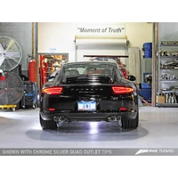 This is the finest exhaust available for the PSE equipped Porsche 991 Carrera and Carrera 4. Period. The AWE SwitchPath™ Exhaust for the Porsche 991 is for those looking to increase power and bring out the note of their 3.4L power plant, without turning their backs on perfect daily-drivability and Porsche sophistication. The AWE Porsche 991 SwitchPath™ Exhaust includes integrated valves designed to afford drivers the best of both worlds: A Track Edition Exhaust and a Touring Edition Exhaust, all in one. The AWE Porsche 991 SwitchPath™ Exhaust responds to the exhaust valve position commands sent from your Porsche’s ECU dependent on your throttle input. This means that the AWE Porsche 991 SwitchPath™ Exhaust will transform from “Track” (The SwitchPath™ valve directs exhaust gasses away from the side mufflers, for Cup Car levels of “announcement”) to “Touring” (The SwitchPath™ valve closes, routing exhaust gasses through the stock side mufflers, for a sophisticated, signature AWE tone, at a volume slightly above stock). Exhaust volume change matches the driving style: Aggressive throttle input elicits aggressive exhaust volume; tame throttle input elicits tame exhaust volume. All PSE console button controls are completely retained.This system was developed first, on a PDK car. The exhaust was created to be 100% PDK friendly. In normal “non-sport-mode” this system will remain 100% drone-free. And better still, none of the components of our AWE Porsche 991 SwitchPath™ Exhaust affect or alter any of the emissions devices on the vehicle, and therefore this exhaust is fully legal for street use. This edition retains the factory Porsche tips, so you can keep that rear looking stealth. This is the exhaust You've been waiting for, only from AWE.