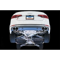 From the masters of S4 performance, AWE proudly presents the B9 S4 exhaust solution. Signature AWE tone, performance, and options for every taste and budget. The SwitchPath™ valved solution is for those who want complete control of their S4’s volume and tone, at their fingertips. The AWE SwitchPath™ Exhaust comes complete with non-resonated downpipes, a precision-engineered x-pipe mid-section, and two valved muffler sections which can be controlled via the SwitchPath™ Remote, or factory valve programming. Sneaking out in the morning? Keep the valve closed. Ready to rumble? Open the valve and let them know you're coming. All tip options include the AWE logo, and double walling to ensure a mirror finish even under hard usage. All tips are individually adjustable, allowing depth into the bumper to be set according to personal taste. Pro tip: we recommend and encourage pairing the SwitchPath™ Exhaust with the SwitchPath™ Remote versus using the factory operation for the best SwitchPath™ experience. Meet the perfected B9 S4 soundtrack.Note: you may notice a slight valve rattle upon cold start as you would with many factory valved systems. This sound will go away within a few minutes and you will be off to the races in no time.