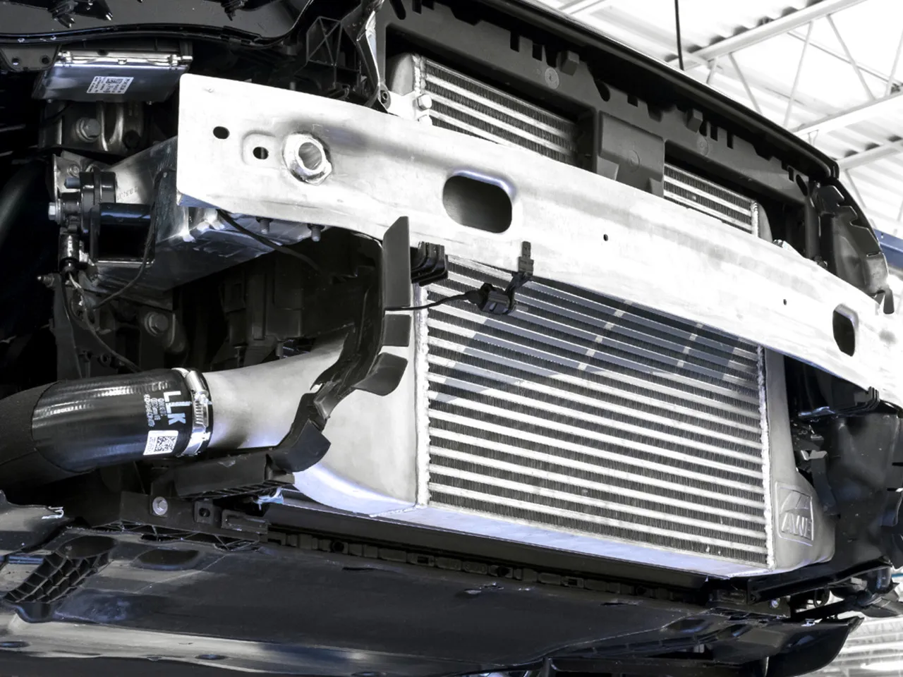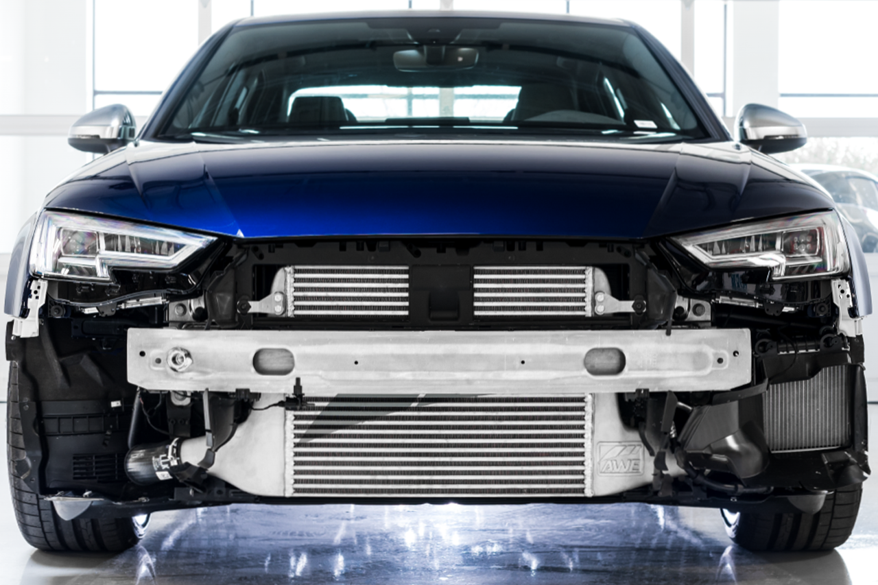 Presenting the AWE ColdFront™ Intercooler for the Audi B9 A4/A5 2.0T & S4/S5 3.0T. Cast aluminum end tanks with internal baffling and a robust bar/plate aluminum core for maximum heat transfer render a 130% increase in frontal surface area and a massive 83% increase in volume over the factory B9 intercooler. Regardless if your vehicle is producing higher-than-stock boost levels, or you’re keeping it within factory spec, the ColdFront™ Intercooler solves any potential heat-related issues. By keeping intake air temperature low, and pressure drop at a minimum, engine output remains consistent even when outside temperatures rise. The ColdFront™ will provide the safety margin needed in order for you to push the limit with confidence. There is no cutting required when installing this intercooler. The ColdFront™ Intercooler reuses the factory intercooler hoses and clamps. Cool to the core.