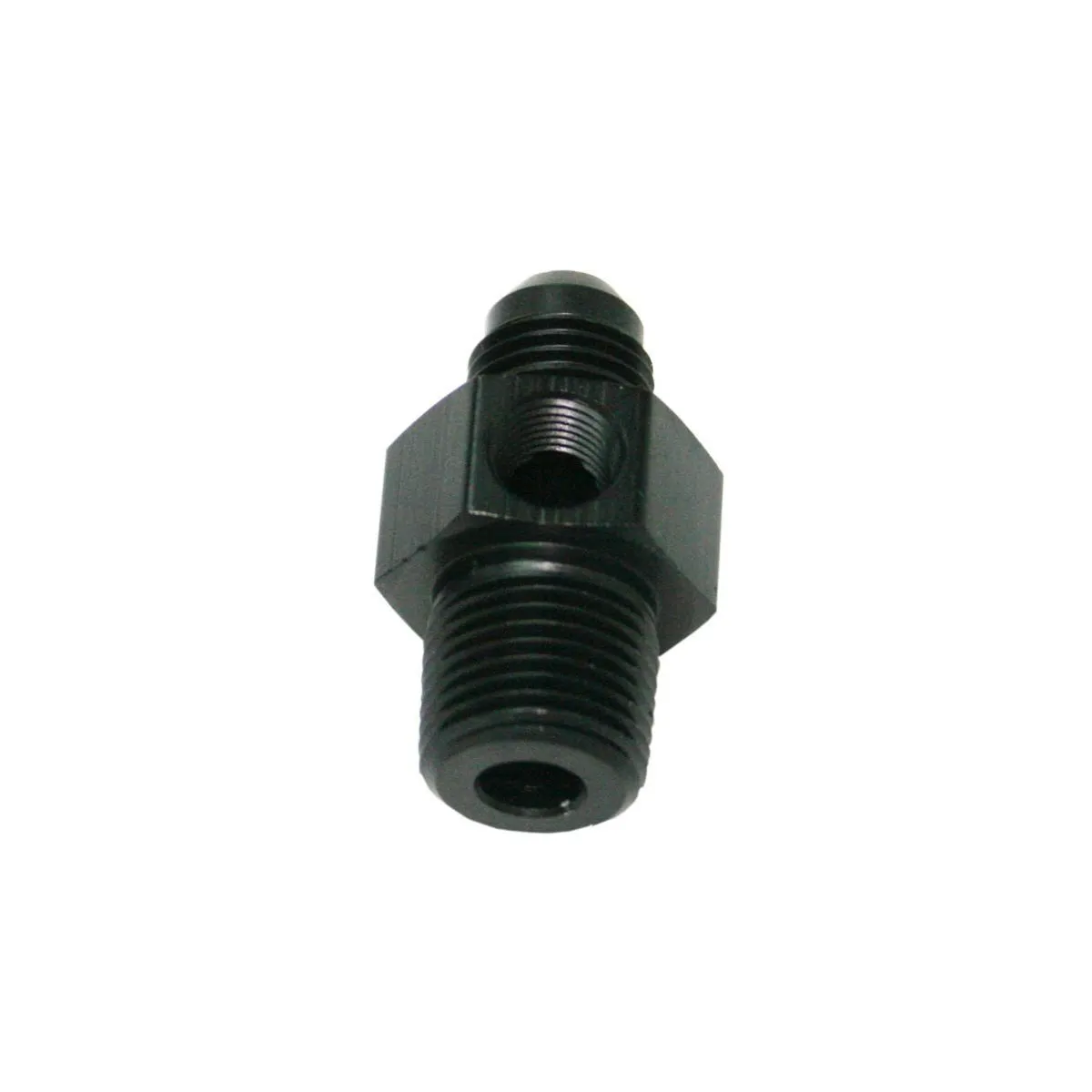 A simple striaght NPT to AN adapter fitting that also features a 1/8 NPT auxilliary port that can be used for sensors, sender units or a gauge. Various sizes available.