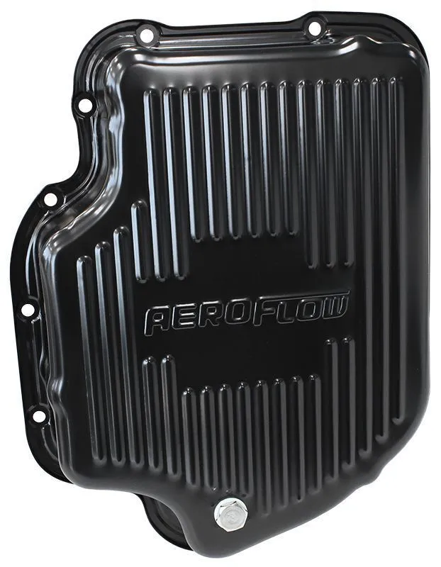 These Aeroflow transmission pans add a little zing to the undercarriage of any vehicle. The included drain plug makes transmission service a snap. These pans are thicker than stock so you don’t have to worry about leaky pan rails. Available in two great finishes; chrome plated and black electrolysis.