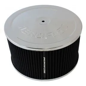 Stand out from the crowd with a magnificent looking Aeroflow air cleaner. These air cleaners are stamped from high quality steel. Available in many different great finishes and styles for that custom look you are after. Chrome-plated or black finish with reusable/washable or paper elements. Aeroflow air filter assemblies work with all popular standard 4150 (5-1/8"" / 130mm) carburettors and 4500 Dominator (7-5/16"" /186mm) carburettors. The 14"" (355.60mm) air filter assemblies come with a drop base that sits 1-1/8"" (28mm) below the carburettor.