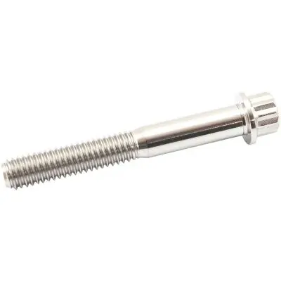 Aeroflow Performance Titanium 12 Point Head bolts, studs and nuts are machined from 6AL-4V grade 5 Titanium and the small head design is ideal when fitting into a recess or tight areas to give maximum clearance. These titanium bolts are the favored material for a fastener due to the attractive property of being a low-density metal, which has a higher tensile strength than many other materials, even in higher temperatures. Given this strength, titanium is remarkably light. When compared to steel in a strength-to-weight ratio, titanium is far superior, as it is as strong as steel but 45% lighter. In fact, titanium has the highest strength-to-weight ratio of all known metals. The pairing of their high strength to weight ratio, excellent resistance to stress corrosion cracking, high corrosion resistance and good fatigue strength make it the best choice to have in your race car. Each bolt is sold individually and available in a variety of threads and lengths to choose from.