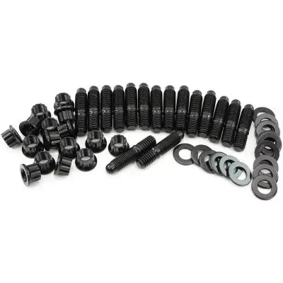 These Aeroflow header studs are made from chrome moly 8740 material for high strength properties. They are coated in a black oxide for protection and long-lasting durability. Each stud features a compact 12-point head which is ideal for use where space is minimal especially on aftermarket header flanges.