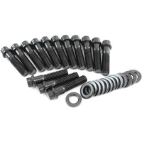 When installing a new intake manifold it is recommended to upgrade your intake bolts, some standard intake manifold bolts won't work depending on aftermarket intake manifolds. These Aeroflow intake bolts are madefrom chrome moly 8740 for strength. They are coated in ablack oxide finish for protection and long-lasting durability. Each bolt featuresa compact 12-point head which is ideal for use where space is minimal on most aftermarketintake manifolds compared to the factory bolts with a larger head. Each set includesthick flat washers for optimumclamping pressures to ensure asure seal.