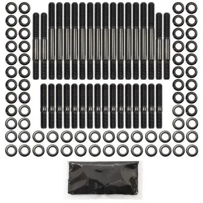 These head studs are manufactured from aircraftquality 8740 high tensile strength chromoly steel and cold-forged to ensure molecular integrity within thestud. Meaning these studs are rated up to 190,000 psi makingthem stronger than Grade 8 andOEM fasteners. All kits come complete with 12-point nuts and hardened washers for an even load distribution and accurate torque readings.