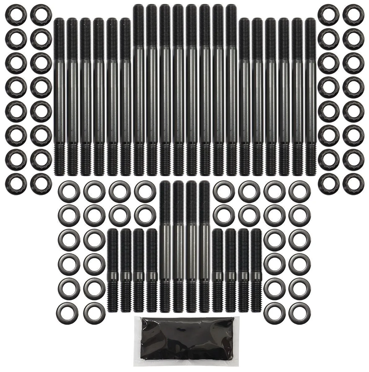 These head studs are manufactured from aircraft quality 8740 high tensile strength chromoly steel and cold-forged to ensure molecular integrity within the stud. Meaning these studs are rated up to 190,000 psi making them stronger than Grade 8 and OEM fasteners. All kits come complete with 12-point nuts and hardened washers for an even load distribution and accurate torque readings.