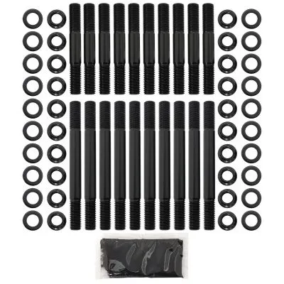 These head studs are manufactured from aircraftquality 8740 high tensile strength chromoly steel and cold-forged to ensure molecular integrity within thestud. Meaning these studs are rated up to 190,000 psi makingthem stronger than Grade 8 andOEM fasteners. All kits come complete with 12-point nuts and hardened washers for an even load distribution and accurate torque readings.