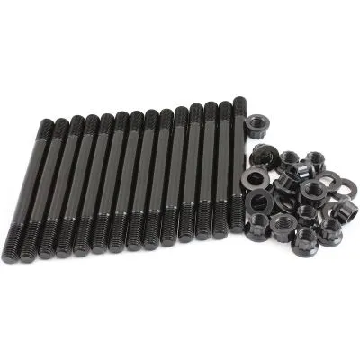 These head studs are manufactured from aircraft quality 8740 high tensile strength chromoly steel and cold-forged to ensure molecular integrity within the stud. Meaning these studs are rated up to 190,000 psi making them stronger than Grade 8 and OEM fasteners. All kits come complete with 12-point nuts and hardened washers for an even load distribution and accurate torque readings.