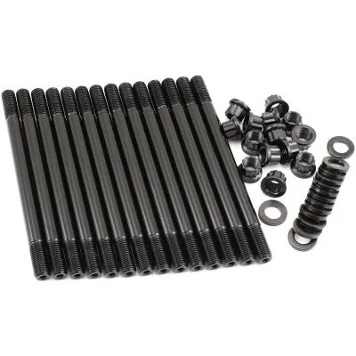These head studs are manufactured from aircraft quality 8740 high tensile strength chromoly steel and cold-forged to ensure molecular integrity within the stud. Meaning these studs are rated up to 190,000 psi making them stronger than Grade 8 and OEM fasteners. All kits come complete with 12-point nuts and hardened washers for an even load distribution and accurate torque readings.