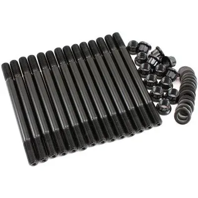 These head studs are manufactured from aircraft quality 8740 high tensile strength chromoly steel and cold-forged to ensure molecular integrity within the stud. Meaning these studs are rated up to 190,000 psi making them stronger than Grade 8 and OEM fasteners. All kits come complete with 12-point nuts and hardened washers for an even load distribution and accurate torque readings.