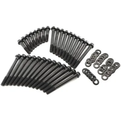 These head bolts are manufactured from aircraft quality 8740 high tensile strength chromoly steel and cold-forged to ensure molecular integrity within the bolt. Meaning these bolts are rated up to 190,000 psi making them stronger than Grade 8 and OEM fasteners. All kits come complete with hardened parallel washers for an even load distribution and accurate torque readings.