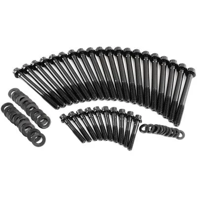 These head bolts are manufactured from aircraft quality 8740 high tensile strength chromolysteel and cold-forged to ensure molecular integrity within the bolt. Meaning thesebolts are rated up to 190,000 psi making them stronger than Grade 8 and OEM fasteners. Allkits come complete with hardened parallel washers for an even load distribution and accurate torque readings.