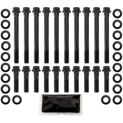 These head bolts are manufactured from aircraft quality 8740 high tensile strength chromolysteel and cold-forged to ensure molecular integrity within the bolt. Meaning thesebolts are rated up to 190,000 psi making them stronger than Grade 8 and OEM fasteners. Allkits come complete with hardened parallel washers for an even load distribution and accurate torque readings.