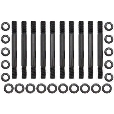 These main studs are manufactured from aircraft quality 8740 high tensile strength chromoly steel and cold-forged to ensure molecular integrity within the stud. Meaning these studs are rated up to 190,000 psi making them stronger than Grade 8 and OEM fasteners. All kits come complete with 12-point nuts and hardened washers for an even load distribution and accurate torque readings.