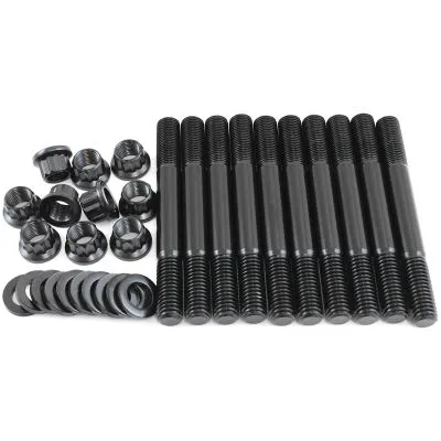 These main studs are manufactured from aircraft quality 8740 high tensile strength chromoly steel and cold-forged to ensure molecular integrity within the stud. Meaning thesestuds are rated up to 190,000 psi making them stronger than Grade 8 and OEM fasteners. Allkits come complete with 12-point nuts and hardened parallel washers for an even load distribution and accuratetorque readings.