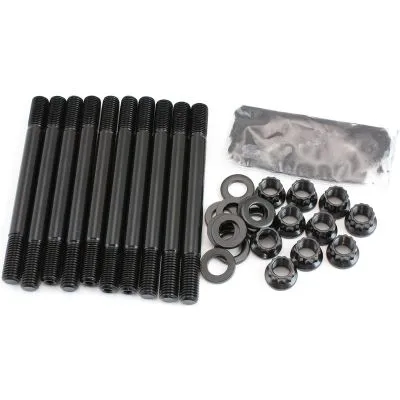 These main studs are manufactured from aircraft quality 8740 high tensile strength chromoly steel and cold-forged to ensure molecular integrity within the stud. Meaning these studs are rated up to 190,000 psi making them stronger than Grade 8 and OEM fasteners. All kits come complete with 12-point nuts and hardened washers for an even load distribution and accurate torque readings.