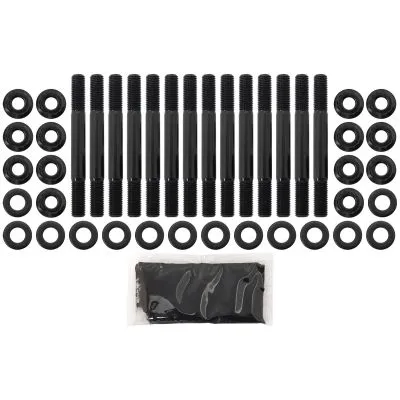 These main studs are manufactured from aircraft quality 8740 high tensile strength chromoly steel and cold-forged to ensure molecular integrity within the stud. Meaning thesestuds are rated up to 190,000 psi making them stronger than Grade 8 and OEM fasteners. Allkits come complete with 12-point nuts and hardened parallel washers for an even load distribution and accuratetorque readings.
