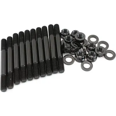 These main studs are manufactured from aircraft quality 8740 high tensile strength chromoly steel and cold-forged to ensure molecular integrity within the stud. Meaning these studs are rated up to 190,000 psi making them stronger than Grade 8 and OEM fasteners. All kits come complete with 12-point nuts and hardened washers for an even load distribution and accurate torque readings.